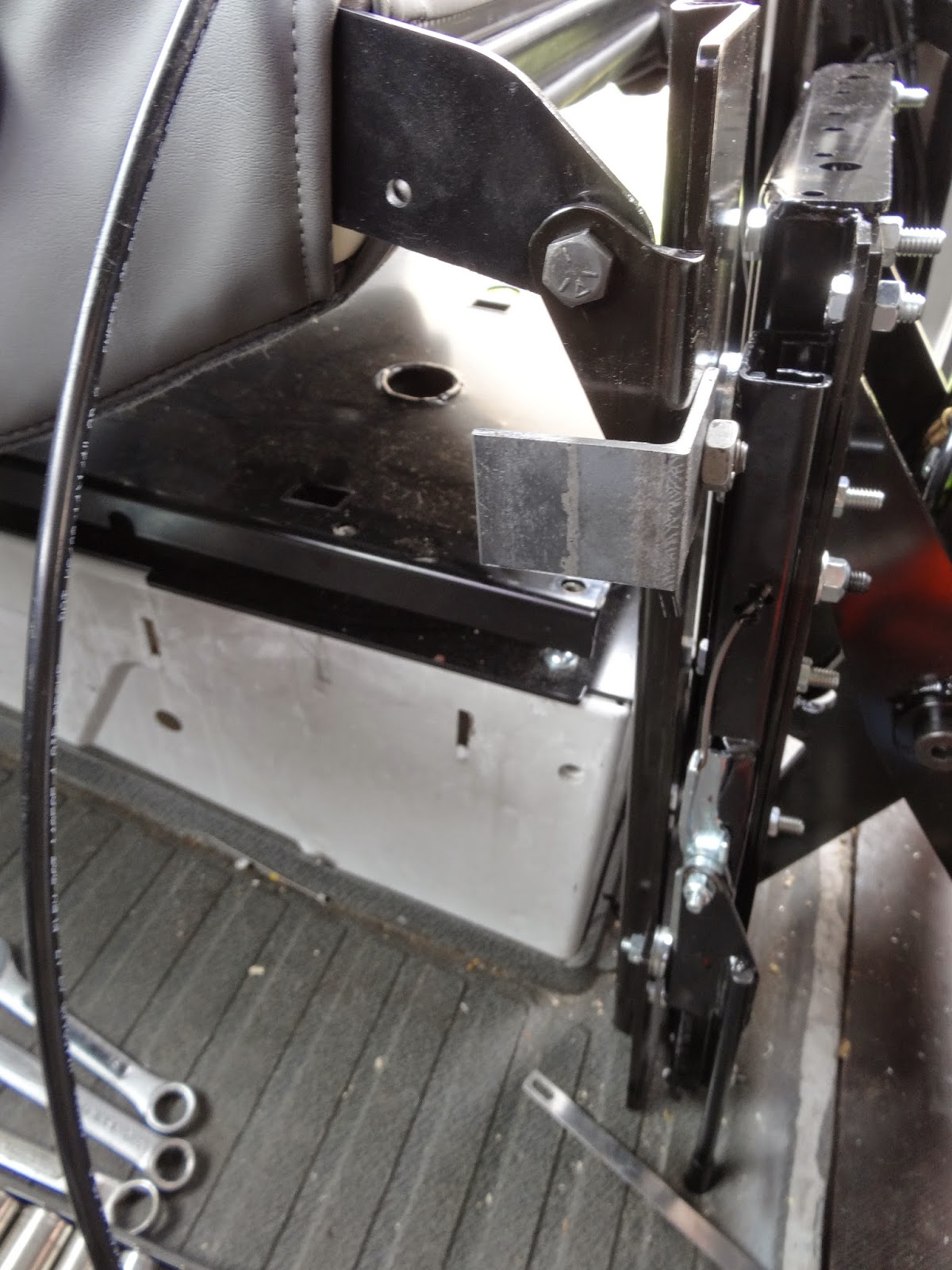 These seats don't have seat belt mounts on the seat themselves (instead they are on the mount plate). To get around the belts pulling when the seat moves I am adding mount brackets on the upper seat frame with tie straps to the mounting plate.